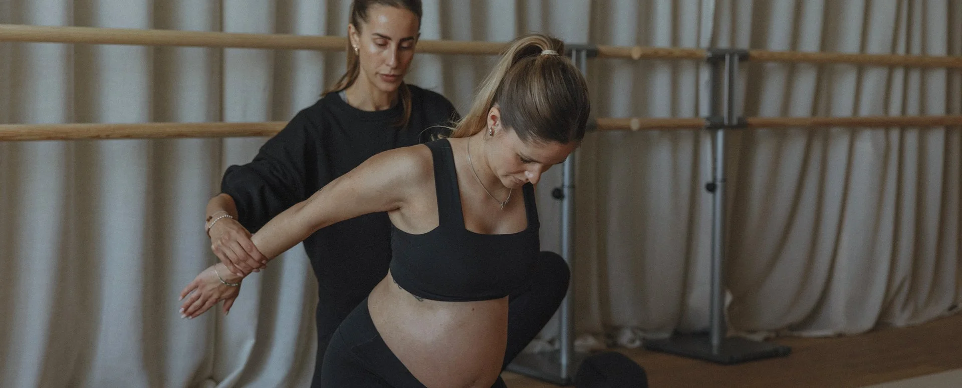 You’ll be guided by instructors who truly understand pregnancy, offering supportive attention tailored to your trimester, energy, and comfort. Each exercise is designed to make you feel strong yet relaxed, keeping your back, legs, core, and pelvic floor engaged without strain.